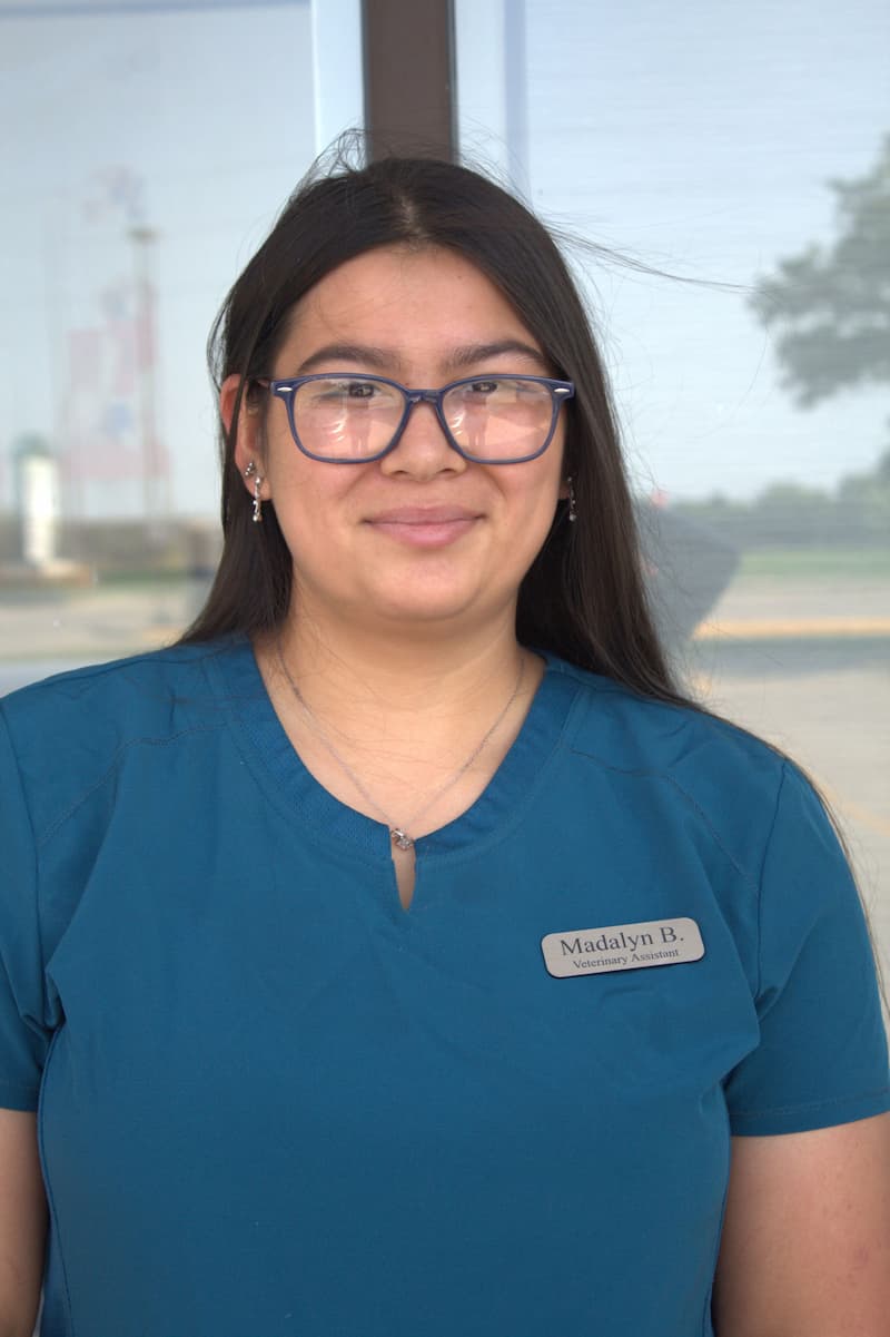 Madyson recently became a Lincoln, NE, resident after living her entire life in Des Moines, Iowa! There, she studied Veterinary Technology and Animal Science at a local college and has been a veterinary assistant for the last few years. She married a UNL grad student in May 2023 and made the big move! Her dog, Bella, is a cancer survivor as of July 2023, though Bella continues treatment in Iowa. Madyson and her husband have a spunky tuxedo cat named Zuko, a little black kitty named Be'lakor that they rescued from their apartment dumpster, and are expecting their first non-fur child, Wilma, in April of 2024! Madyson’s hobbies include painting, keeping her house plants alive, educating clients on veterinary medicine, and seeing Broadway musicals!